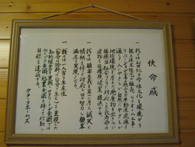 我々は21世紀の今、住文化を環境から捉え、注文住宅の販売・リフォーム工事・リノベーション工事の施工及び不動産流通を通して、人にやさしい、自然にやさしい地球環境を考えた、廃棄物を出さない循環型社会づくりに対応した長寿命の建物を住環境提案・提供する。