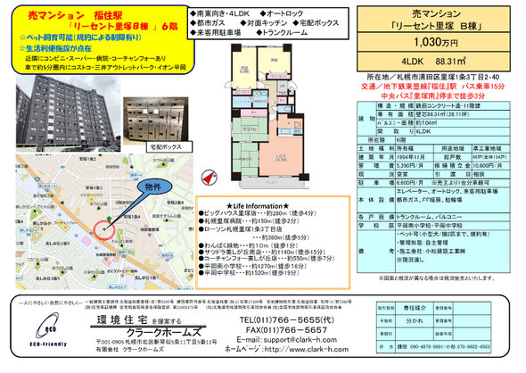 ★最寄り:地下鉄東豊線 福住駅 バス乗車15分