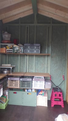 グリーンが印象的なかわいい雰囲気の物置になりました!
